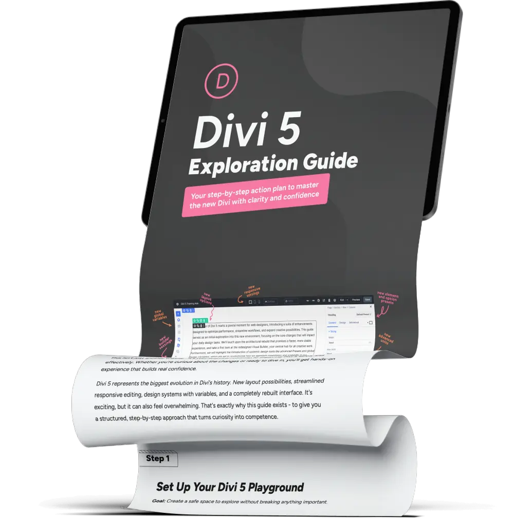 Divi 5 is here. Get the roadmap, the bonus guide, and the clarity you need to work with confidence instead of overwhelm.